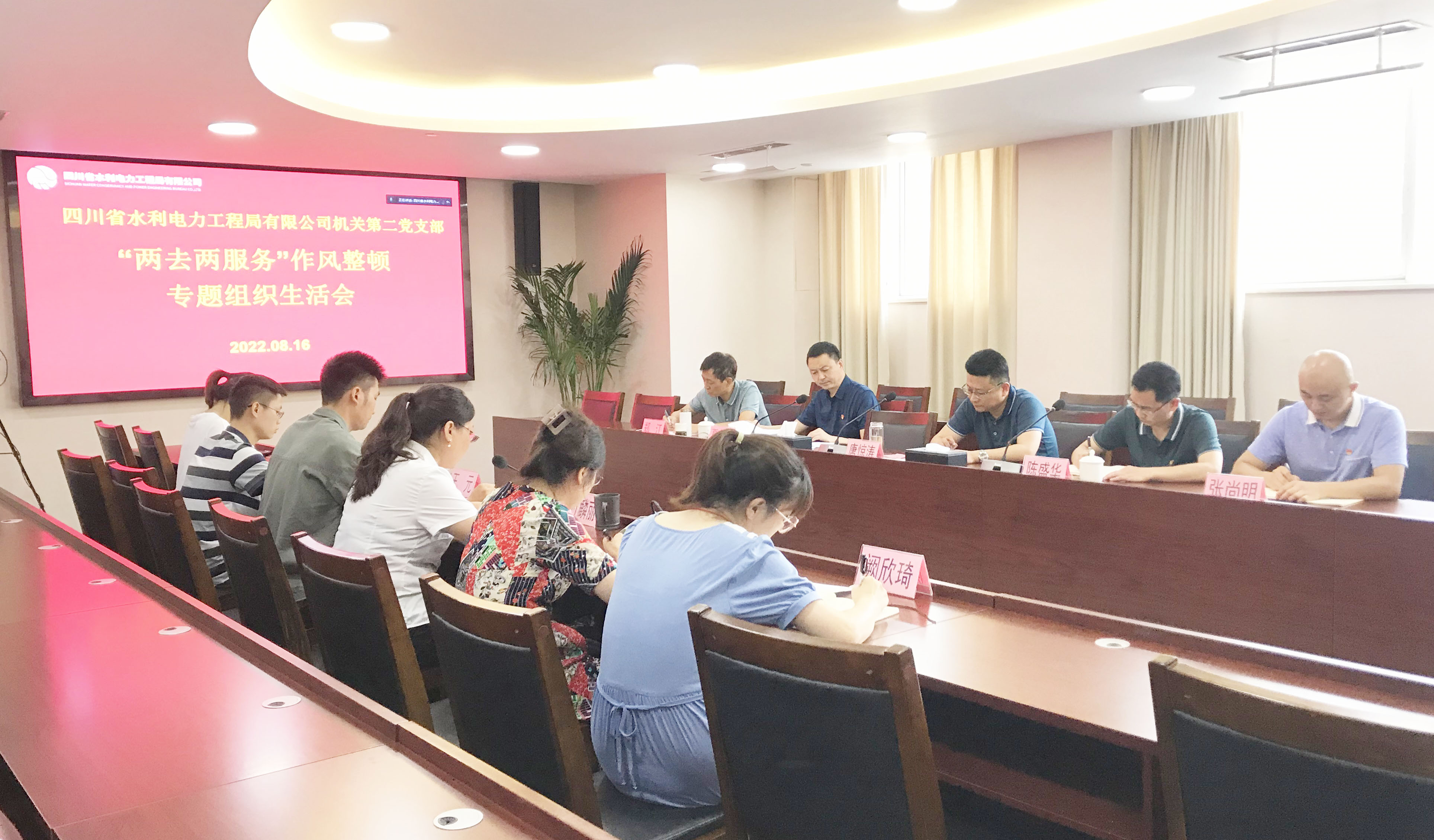 8月16日,工程局公司機(jī)關(guān)第二黨支部組織支部黨員及支部涵蓋部門非黨員職工在公司總部會議室(資陽辦公區(qū)在301會議室以視頻形式參加)召開“兩去兩服務(wù)”作風(fēng)整頓轉(zhuǎn)入“抓整改重鞏固看成效”階段專題組織生活會。公司黨委專職副書記唐驚濤,黨委委員、紀(jì)委書記陳盛華,黨委委員、工會主席夏永紅以普通黨員身份參加會議。工會副主席、機(jī)關(guān)第二黨支部書記付麟麗主持會議。